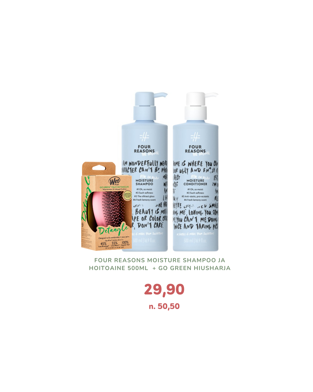 Four Reasons Moisture shampoo hoitoaine go green hiusharja